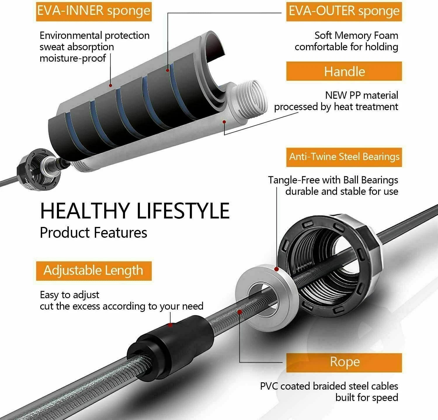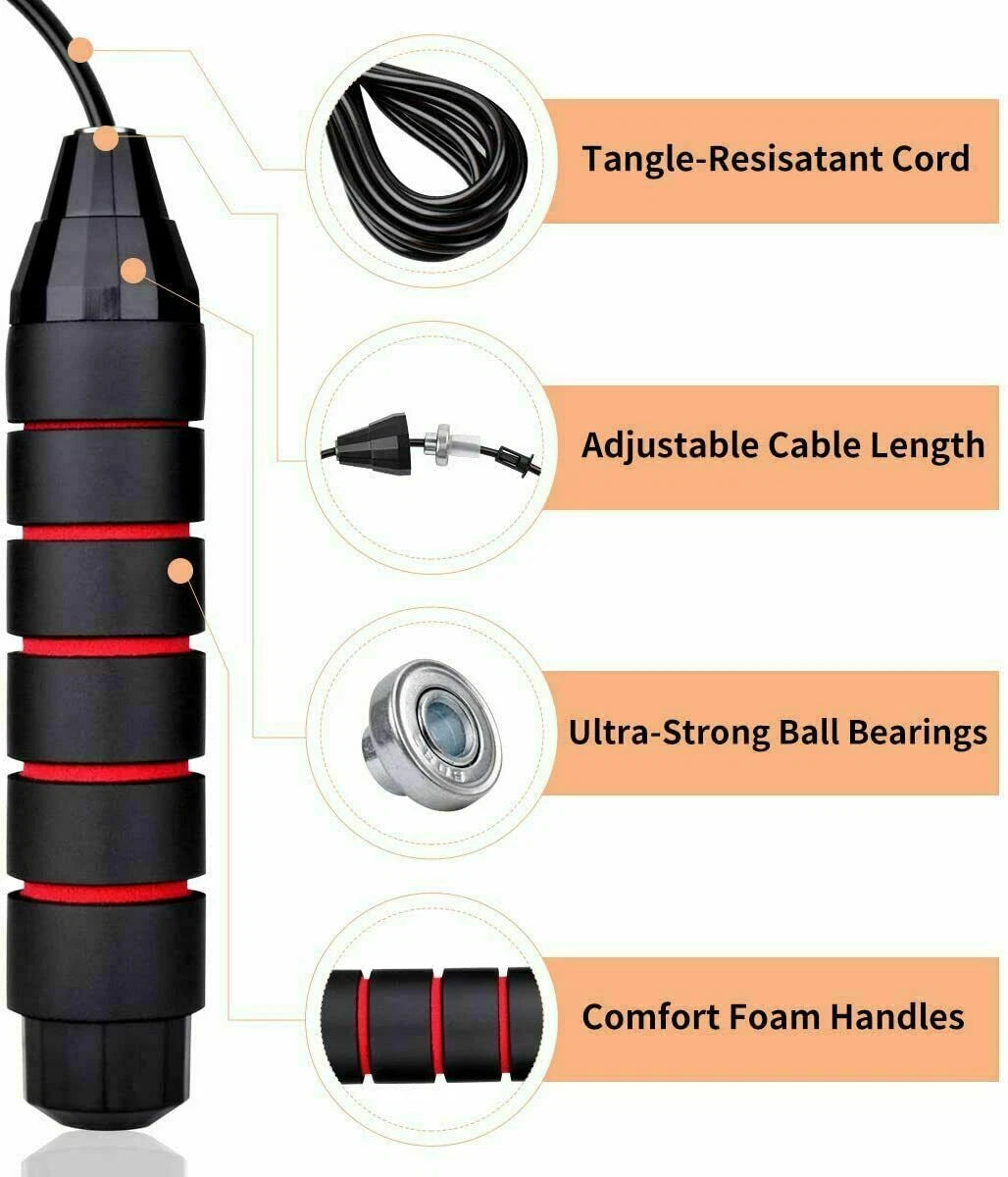 Adjustable Gym Jump Rope - Ball Bearing Speed Rope for Boxing & Aerobic Fitness